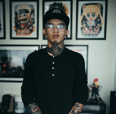 Bio: Born in Osaka and trained in traditional Tebori techniques, Yuki brings authentic Japanese artistry to every piece. Her understanding of Japanese symbolism, composition, and flowing design creates powerful full-sleeve and back pieces that tell complete stories. Yuki's work has been featured in Tattoo Life Magazine and she's known for her patient, meditative approach to large-scale projects.